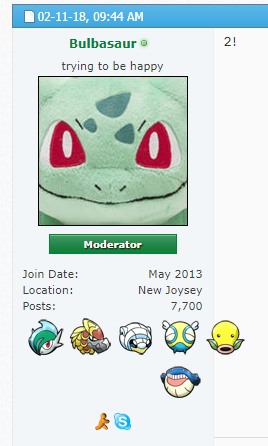 • I pick Bulbasaur as my Pokemon. I wish to send Suicune's Fire a note saying "You're awesome!". This note gets added to her postbit along with a little Bulbasaur sprite.